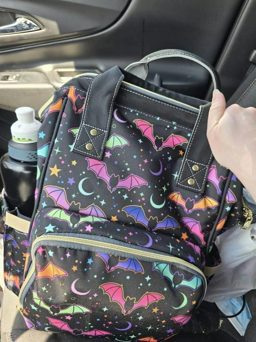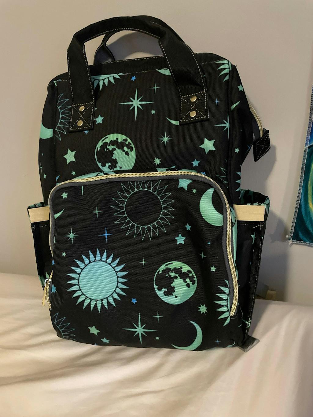 the bag is perfect very well made. Side pockets for water bottle even fits my 32 oz water bottle. Print is perfect, colors are wonderful. Great costumer service and commutation by seller, will be back to this shop again.
