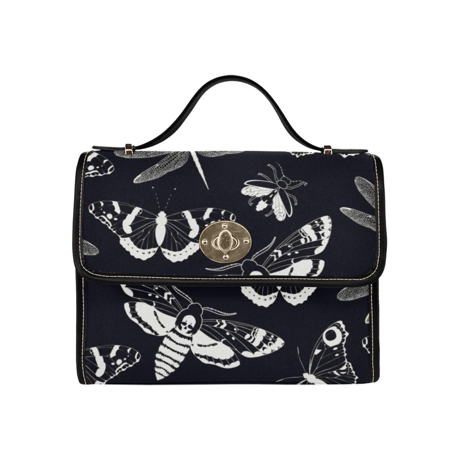 black moth bag, goth insect purse, bug print handbag, witchy crossbody, white moth print, goth aesthetic bag, fairycore insect bag, dark bug purse, monochrome moth bag, witch forest gift, shadow moth vibe, black white purse, alt bug fashion