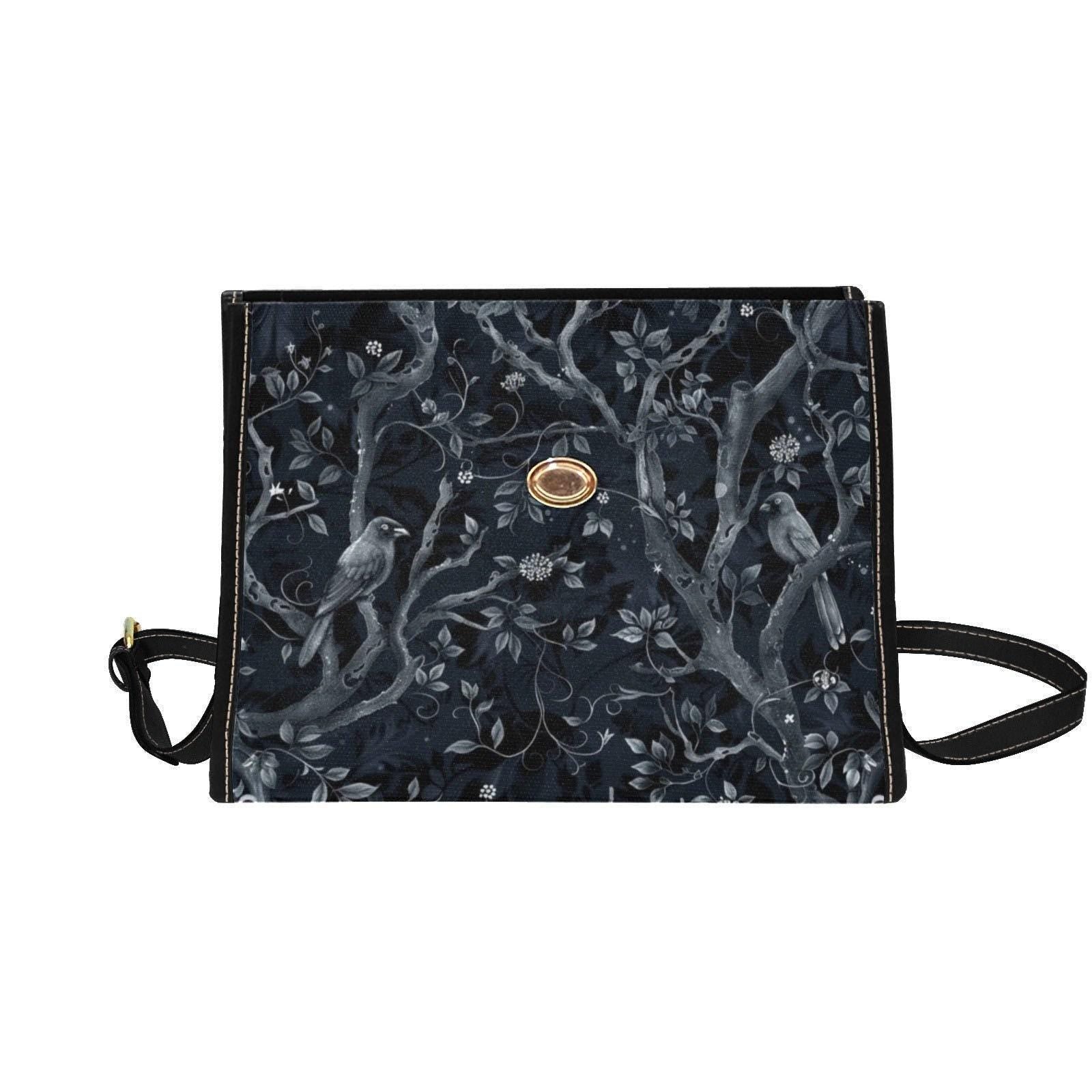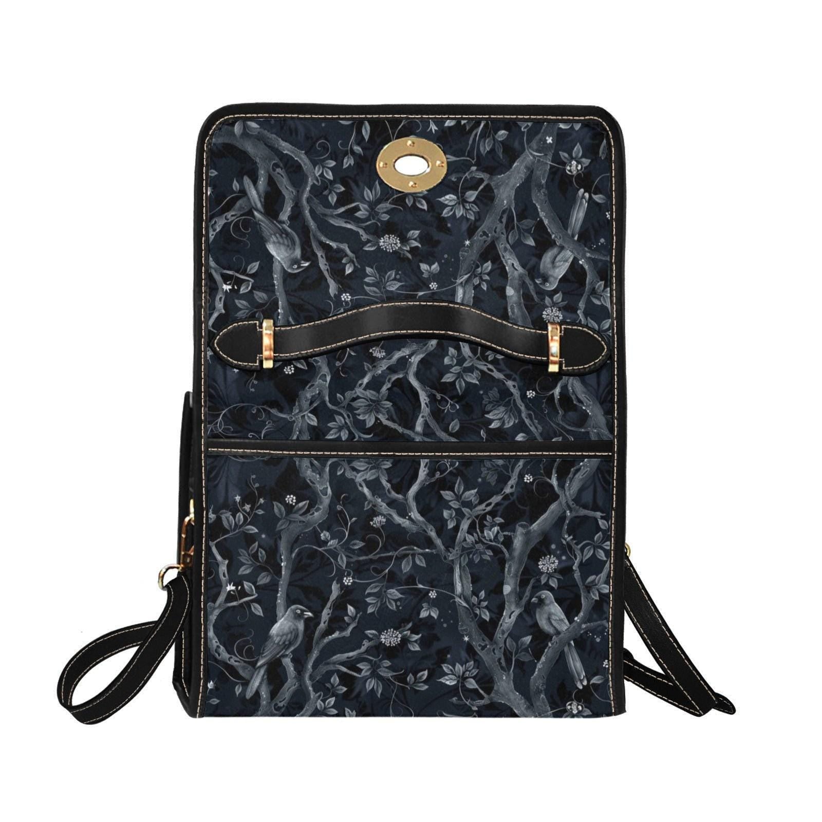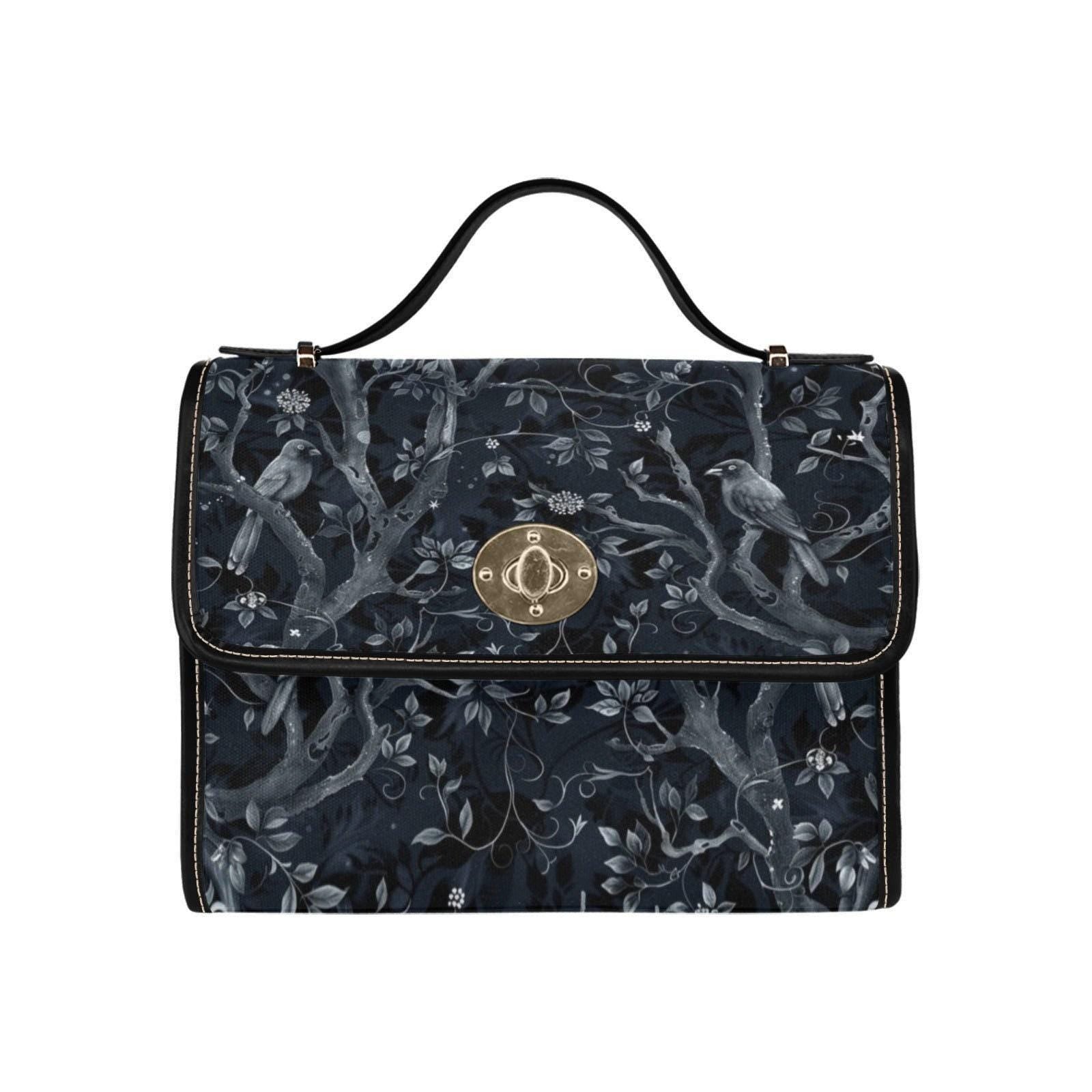 Gothic Satchel Bag with Raven and Forest Print, Witchcore Shoulder Bag for Dark Academia Aesthetic, Mystical Nature-Inspired Purse