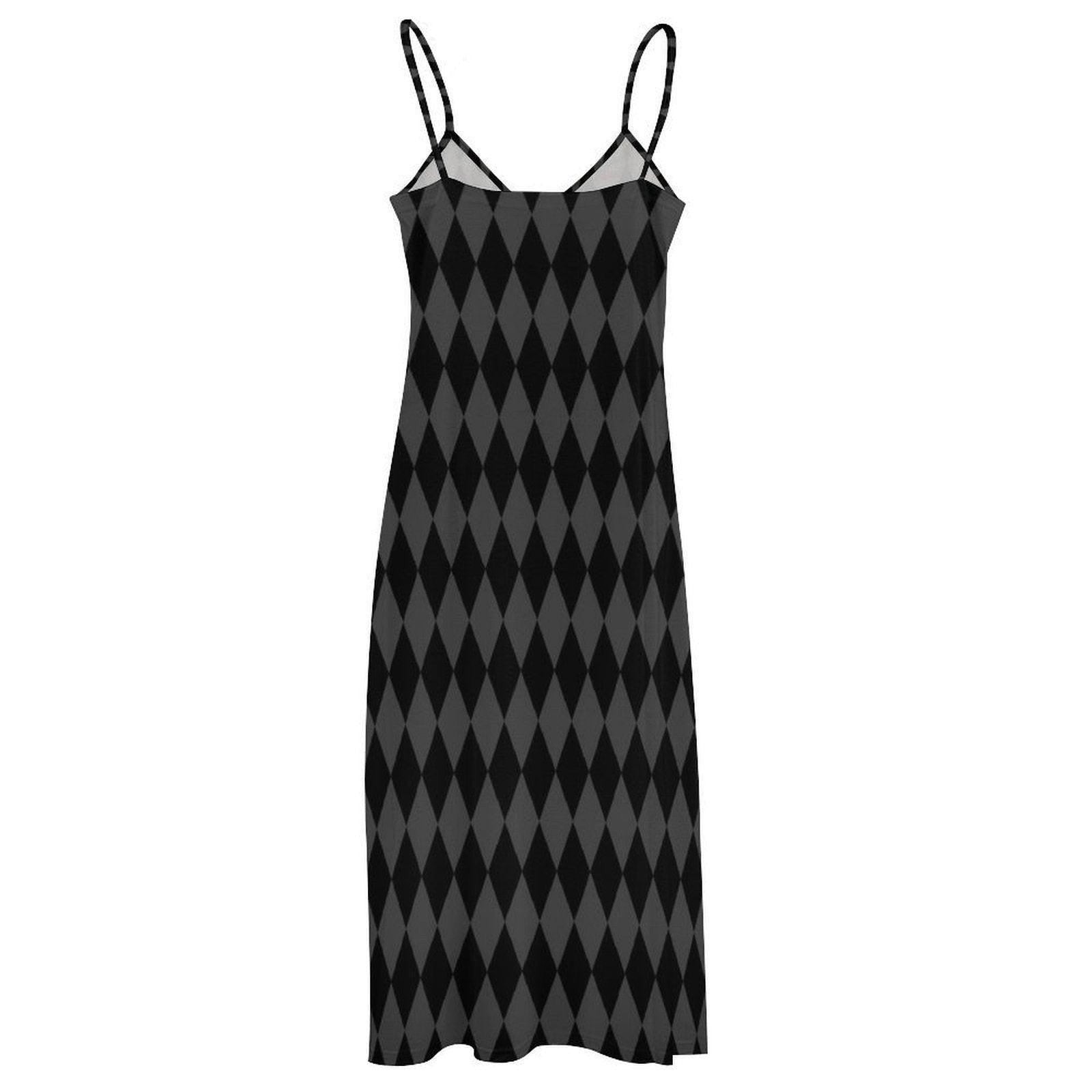 harlequin maxi dress, gothic summer dress, checker cami dress, black alt dress, edgy maxi dress, dark flowy dress, goth fashion dress, slip dress gothic, grunge long dress, alternative cami dress, moody style dress, long goth outfit, dark dress for her
