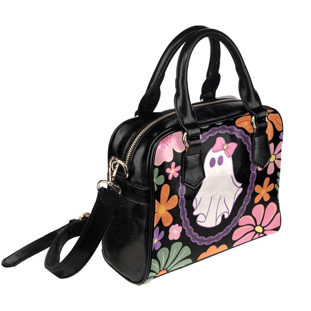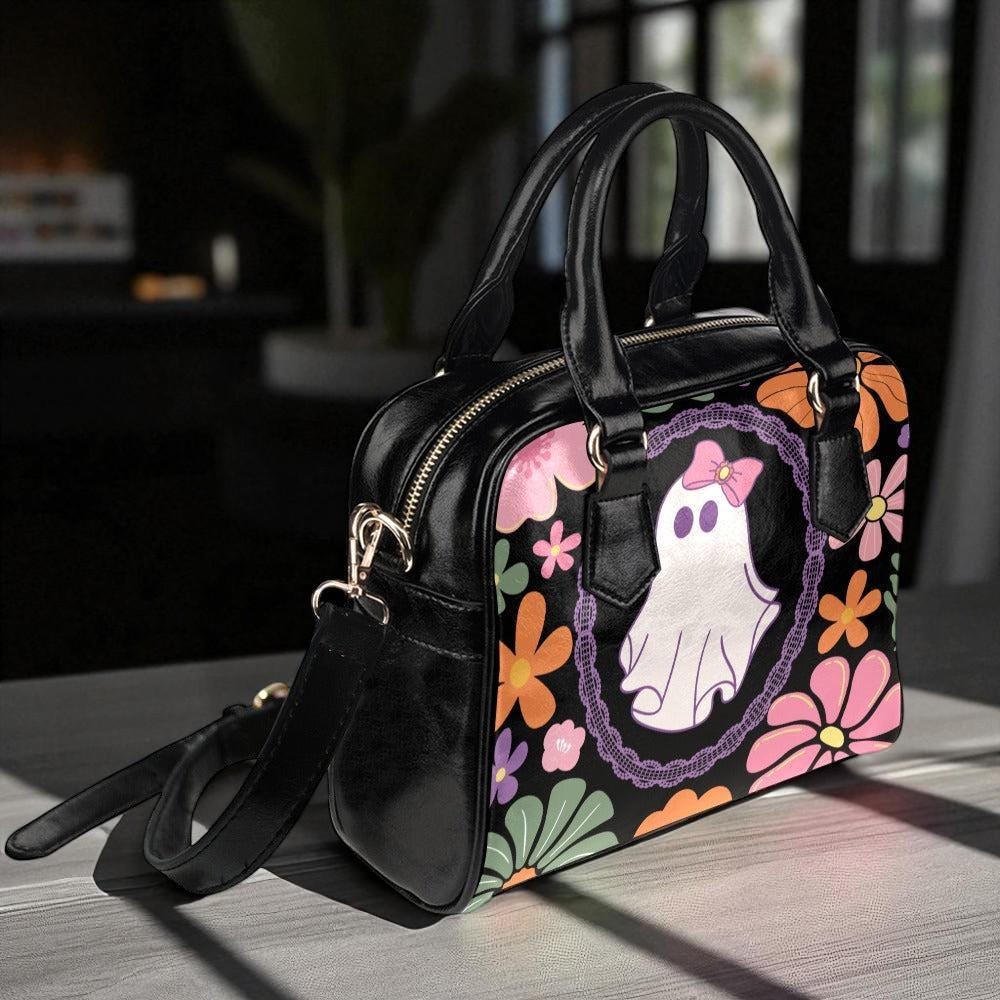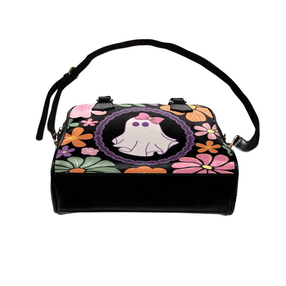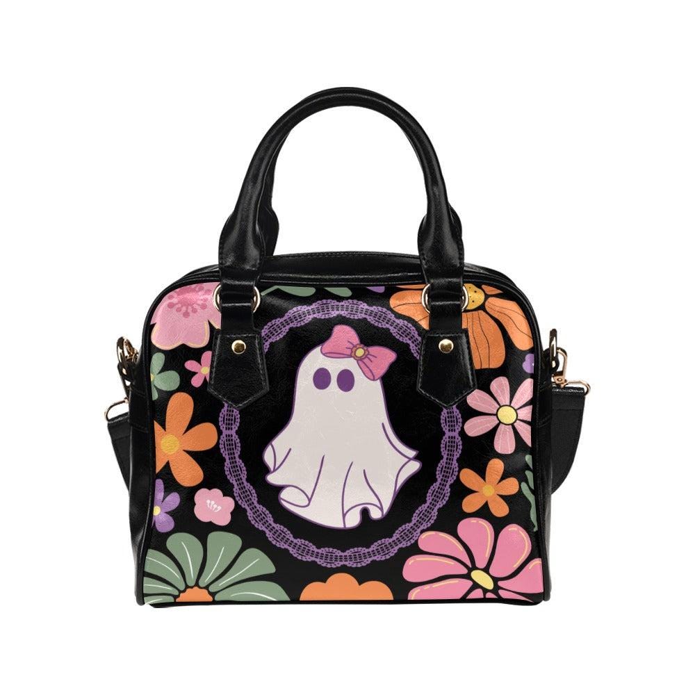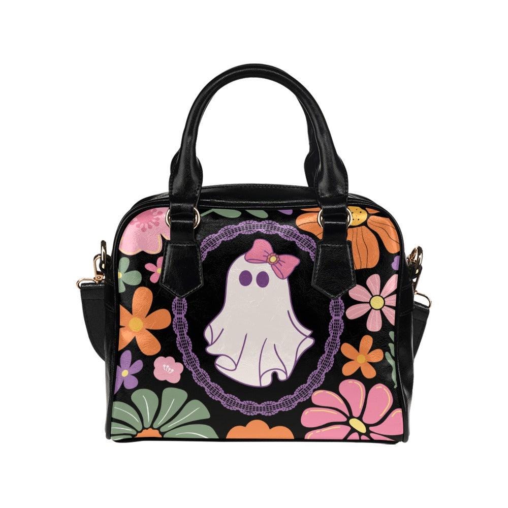 Retro Floral Ghost Bag, Pastel Halloween Satchel, Cute Witchy Purse, Spooky Vintage Handbag, Kawaii Bow Ghost Tote, Haunted Shoulder Bag