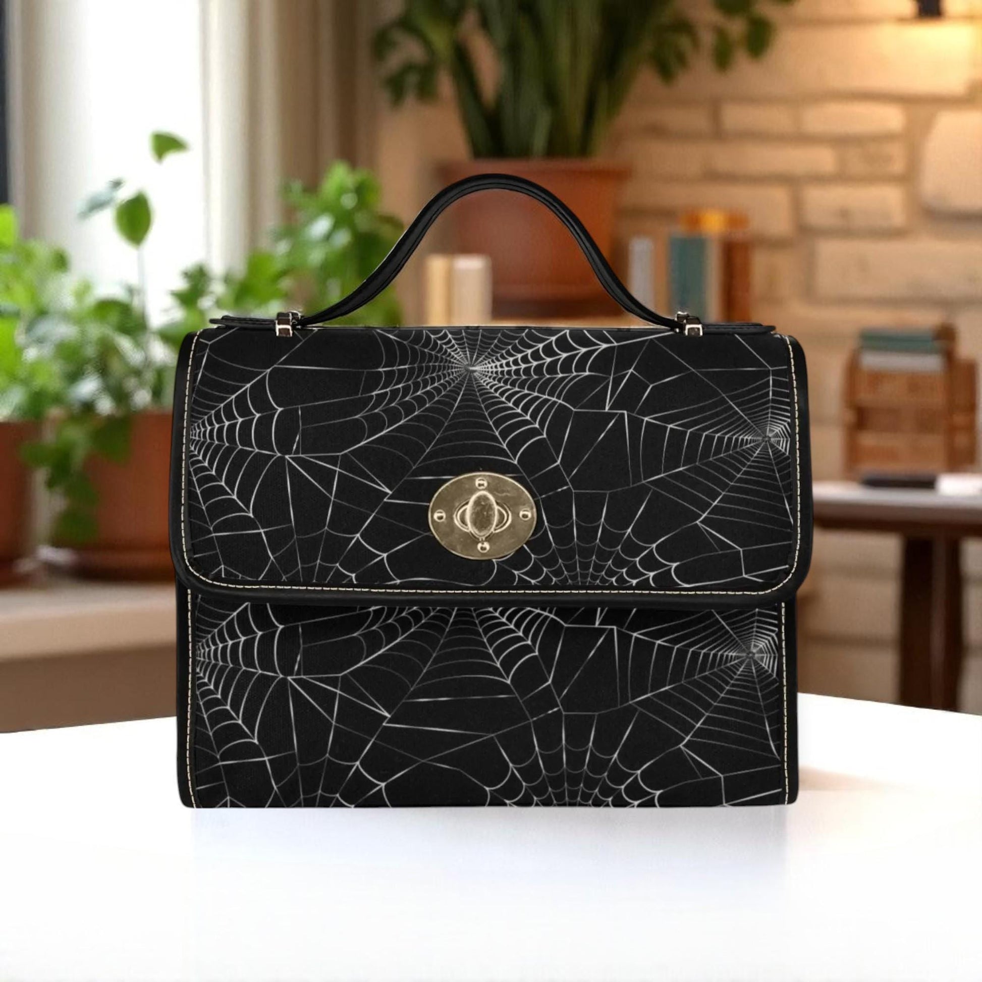 Spiderweb gothic shoulder bag, witchcore web canvas purse, alt spooky minimalist crossbody satchel, halloween dark glam gift idea