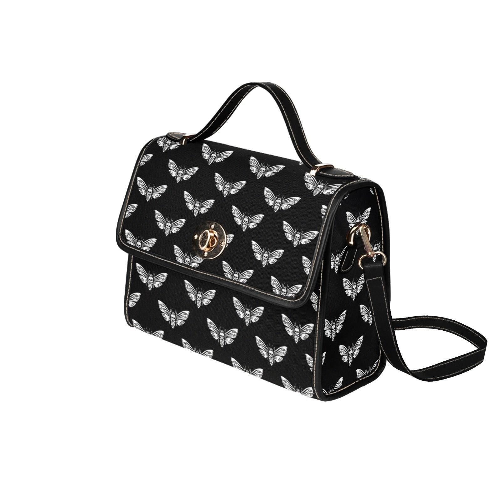 White Moth Print, Dark Goth Aesthetic Bag, Celestial Witch Style, Black Crossbody Purse, Lunar Bug Pattern, Occult Fashion Gift for Her