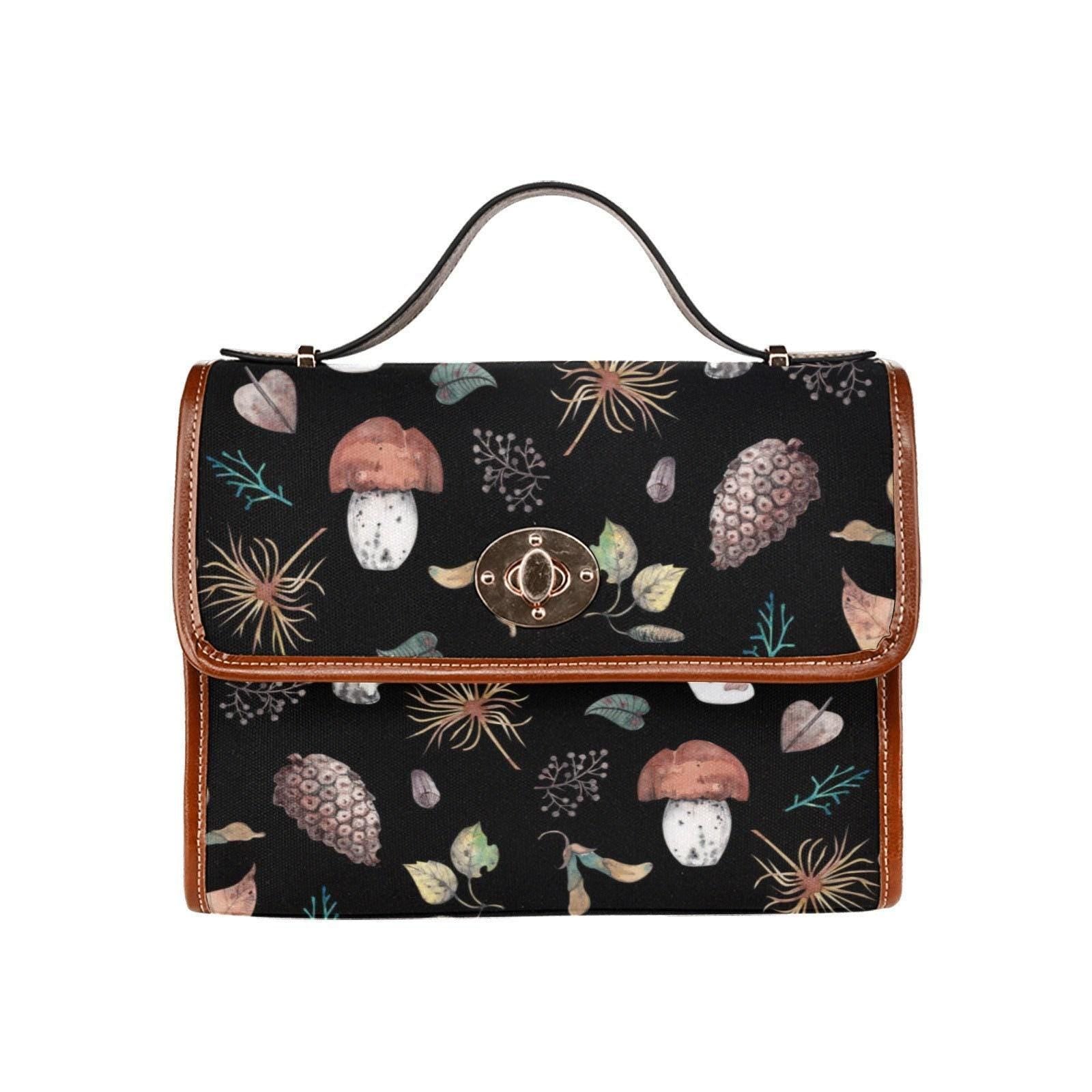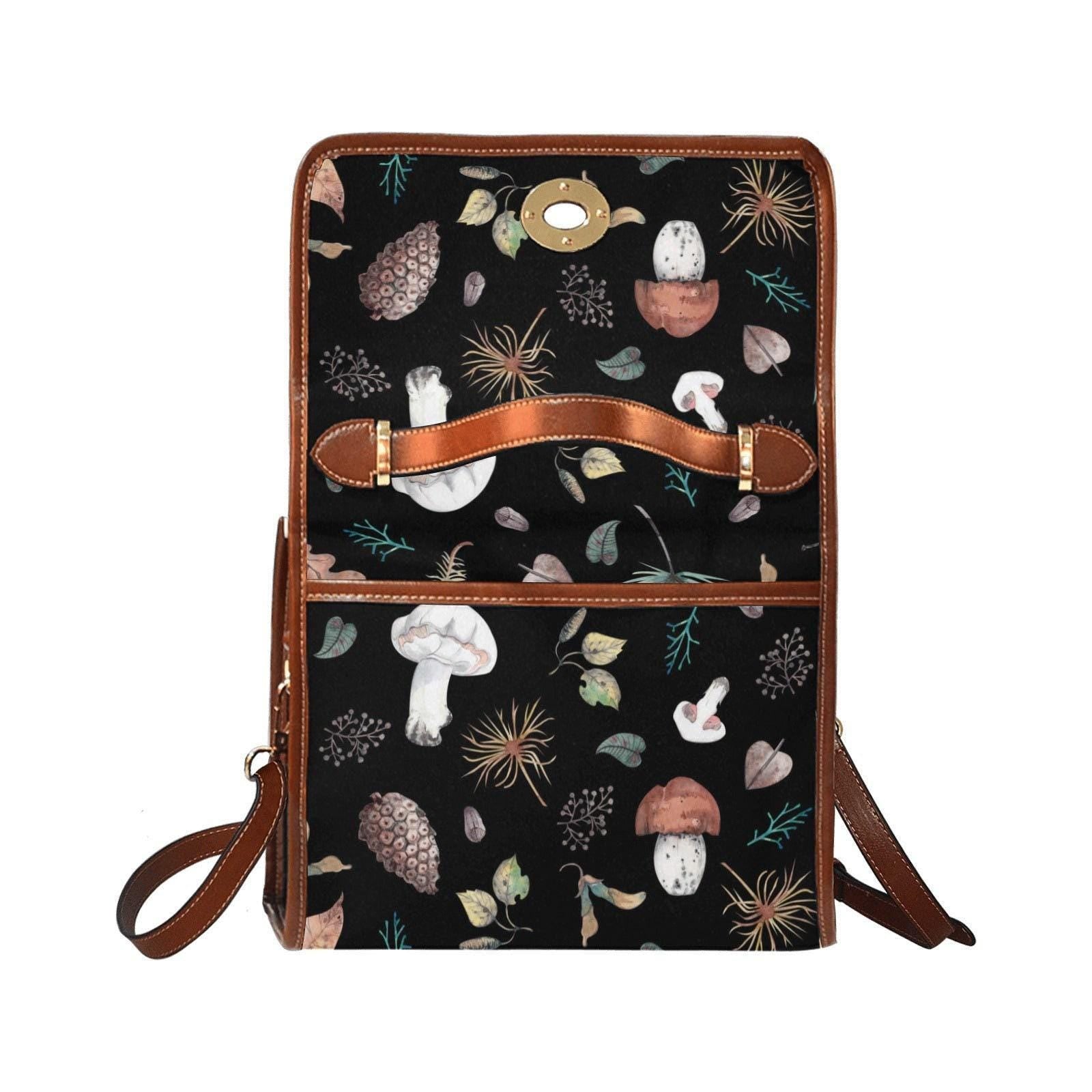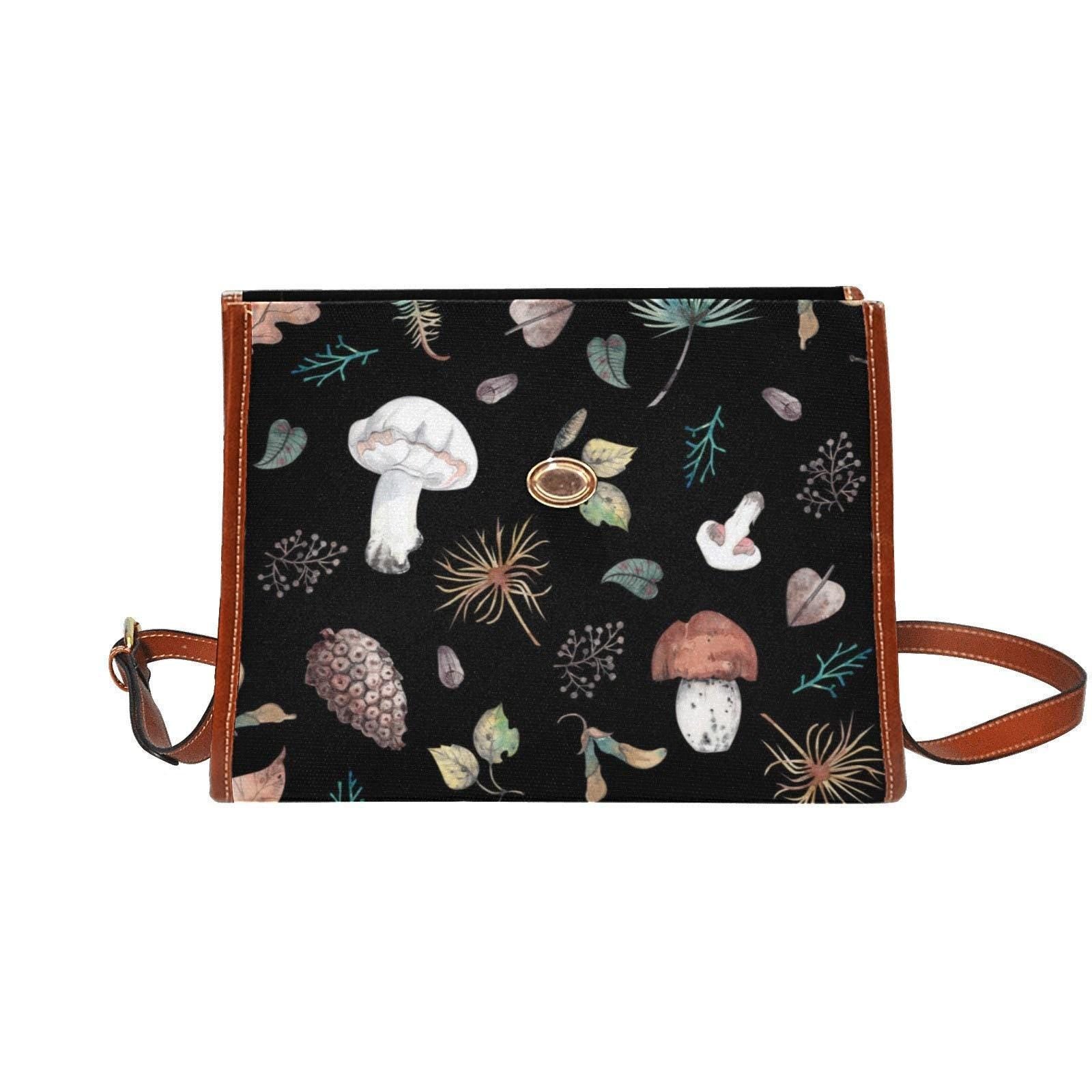 Witch Canvas Satchel bag, Dark Faecore Witchcore Cross Body purse, Canvas Witch Handbag, Mystical Fairy Mushrooms Boho Purse